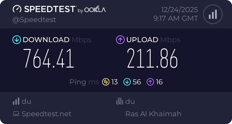 My du fiber connection delivered exactly what was promised. I consistently received near-gigabit speeds at the main router after upgrading my plan. The issues I experienced were not due to du’s network, but due to how my home Wi-Fi and mesh extension were originally designed and placed.
